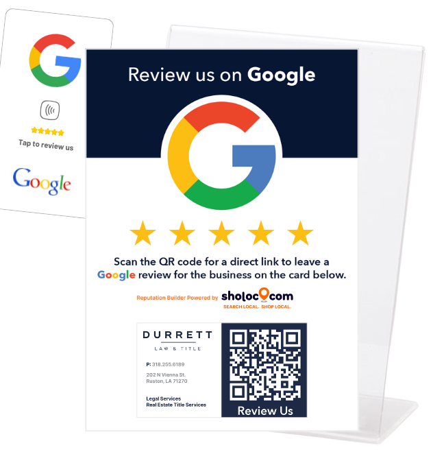 Google reviews play a major role in local search visibility, customer trust, and how often your business gets chosen. The Google Review Request Kit makes collecting those reviews easier than ever. It includes a durable display holder with a clear printed insert that encourages customers to leave a review, plus 500 custom review request cards with your business information and a unique QR code for quick scanning. You also receive an NFC tap-to-review card that lets customers start a review instantly with their phone. Each piece is designed to create more review opportunities and help your business stand out in local search.